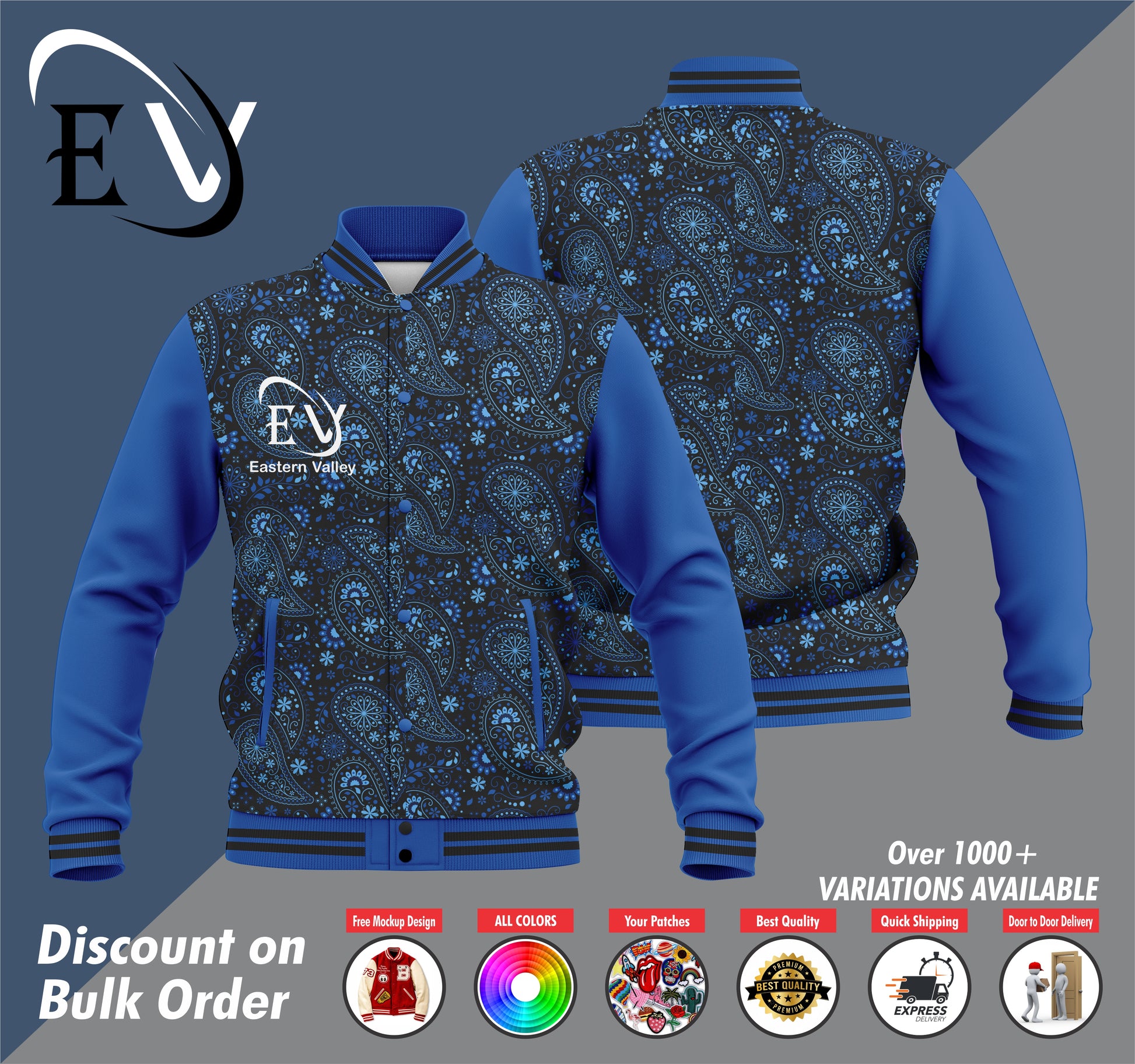 Custom varsity jacket, personalized Letterman jacket, bomber jacket, customizable jackets, free shipping, men's varsity jackets, women's varsity jackets, baseball jackets, with sublimation, wholesale pricing, high-quality materials, custom design.