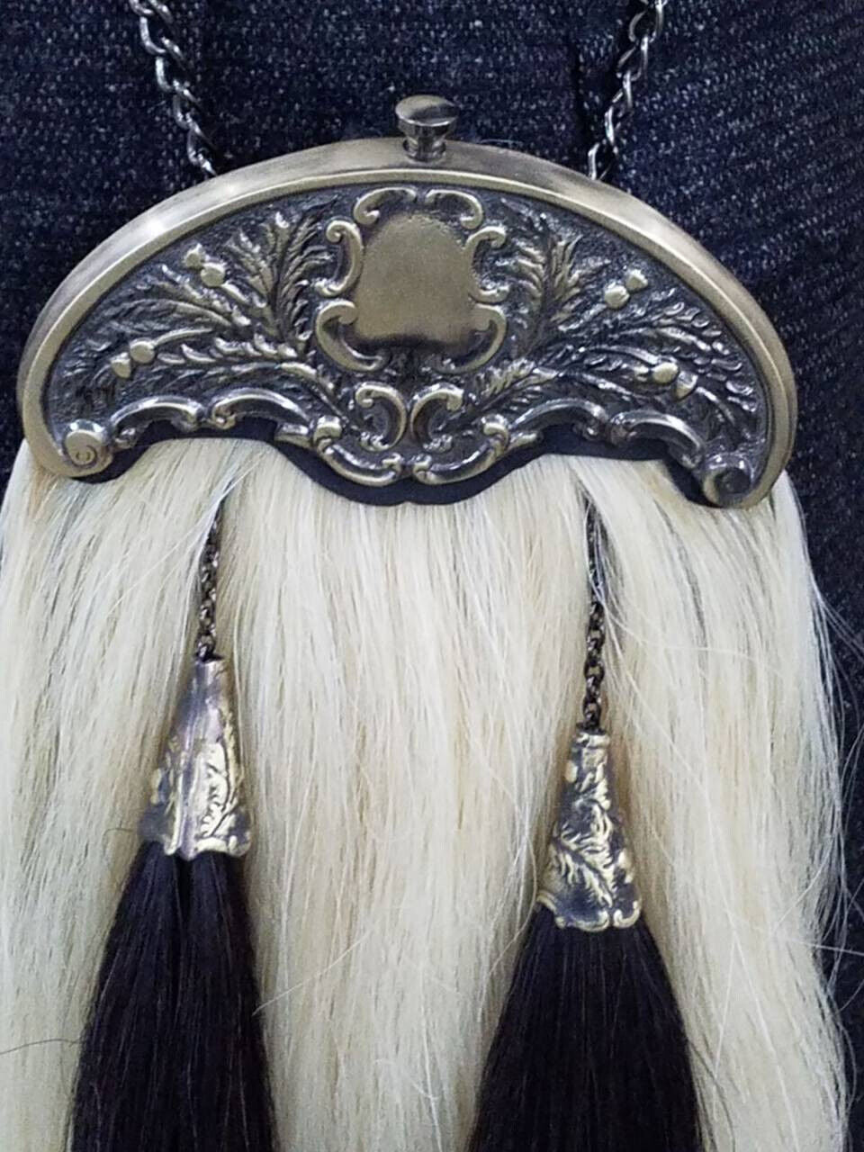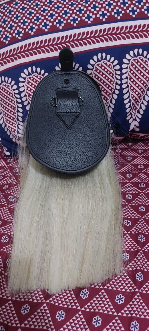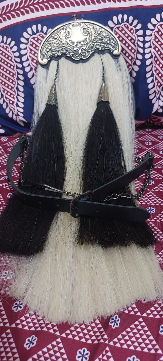 Elevate your highland attire with our Long Horse Hair Sporran. Handcrafted from high-quality cowhide leather, it features two elegant white tassels and long horse hair for a traditional touch. Expertly handmade with attention to detail, this sporran is a must-have for any kilt-wearer.